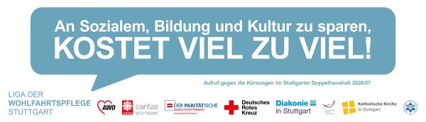 Die Liga der Wohlfahrtspflege wehrt sich gegen die geplanten Kürzungen des Gemeinderates Stuttgarts in der sozialen Arbeit und der Angebote für Kinder und Familien. Auch wenn der Gemeinderat in den vergangenen Tagen von einzelnen Kürzungen wie im Bereich der Kinder- und Ganztagsbetreuung abgewichen ist, bleiben die geplanten Kürzungen inakzeptable Einschnitte in die soziale Daseinsvorsorge und gefährden den sozialen Frieden und den gesellschaftlichen Zusammenhalt der Stadt. Die Träger und Einrichtungen der sozialen Arbeit planen in den kommenden Tagen öffentlichkeitswirksame Aktionen zur Sitzung des Gemeinderates am Montag 15.Dezember. Nähere Informationen finden Sie in Kürze hier.